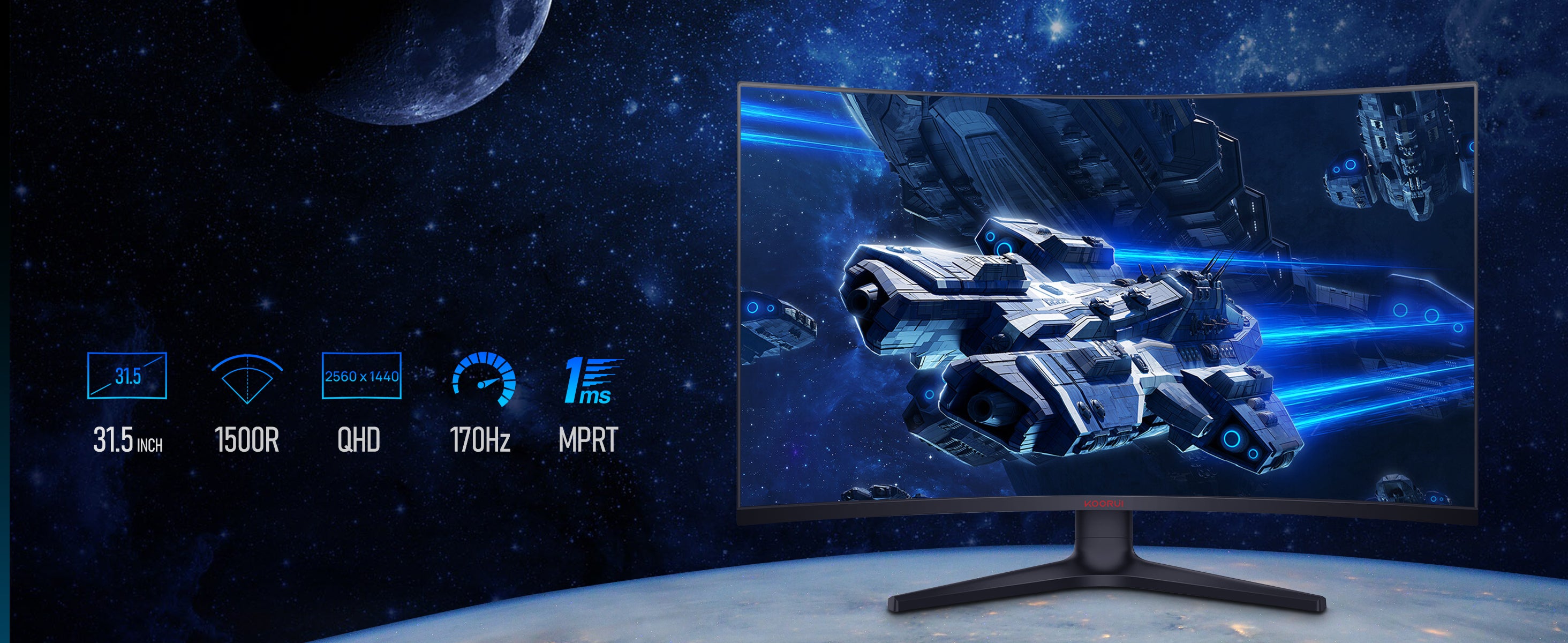 Moniteur de jeu incurvé KOORUI 32E6QC 31,5 pouces VA QHD 170 Hz 1500R