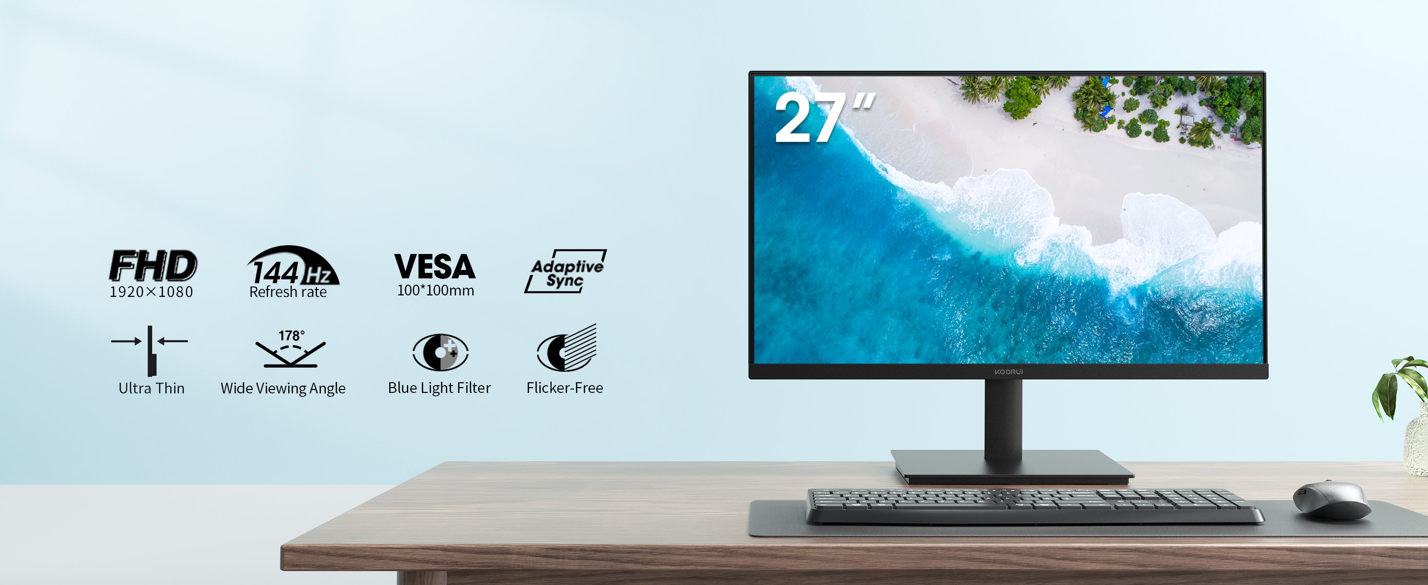 Moniteur professionnel KOORUI E2711K 27 pouces IPS FHD 144 Hz