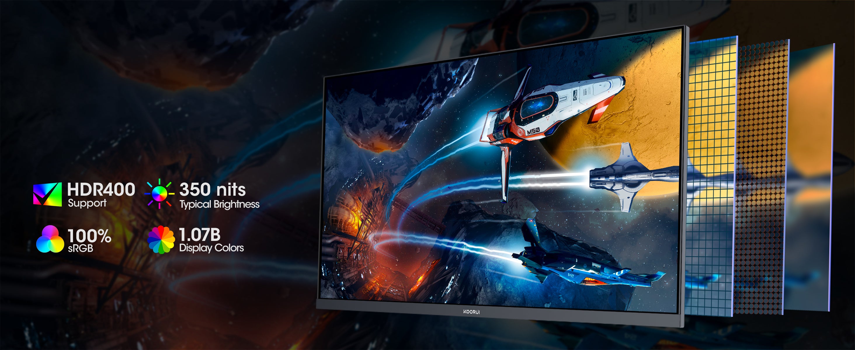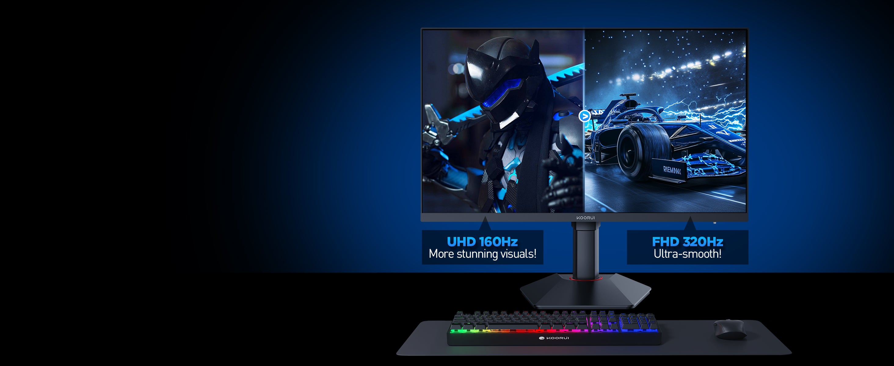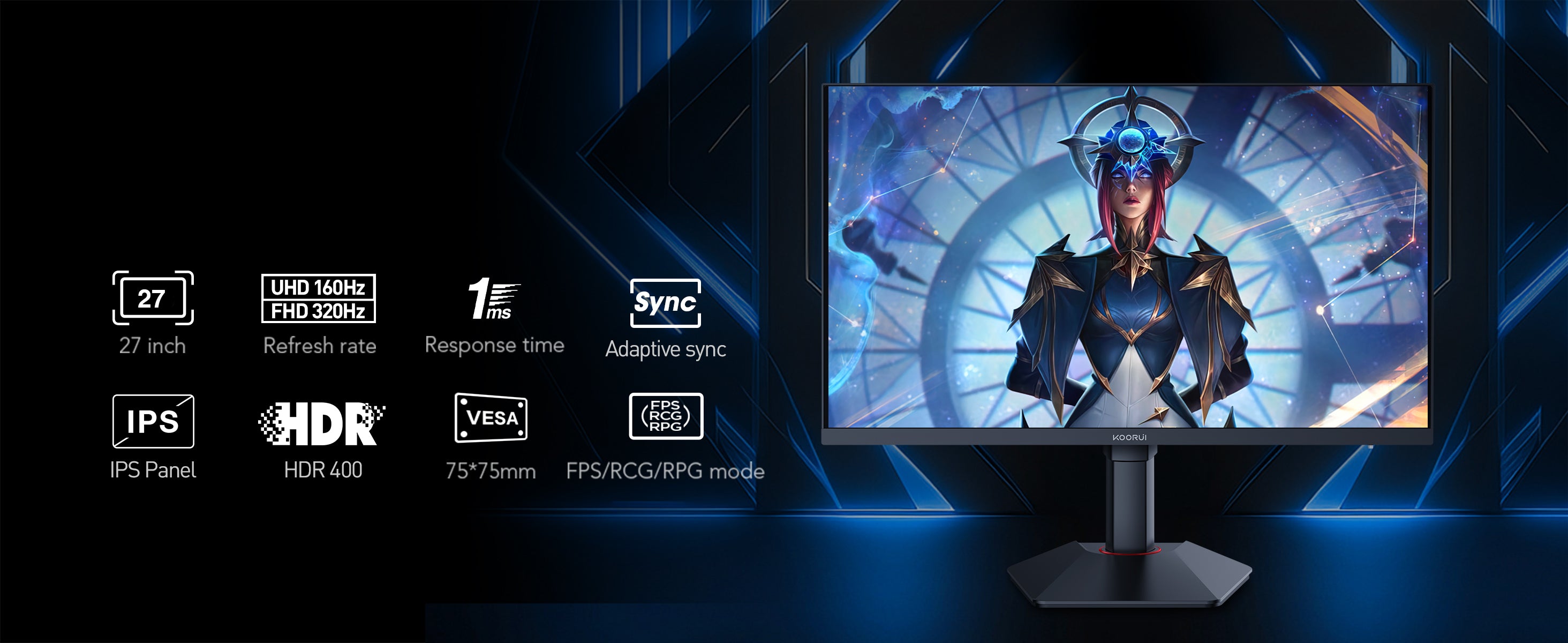 Moniteur de jeu KOORUI G2741L 27 pouces IPS 4K UHD double mode 160 Hz + UHD / 320 Hz + FHD