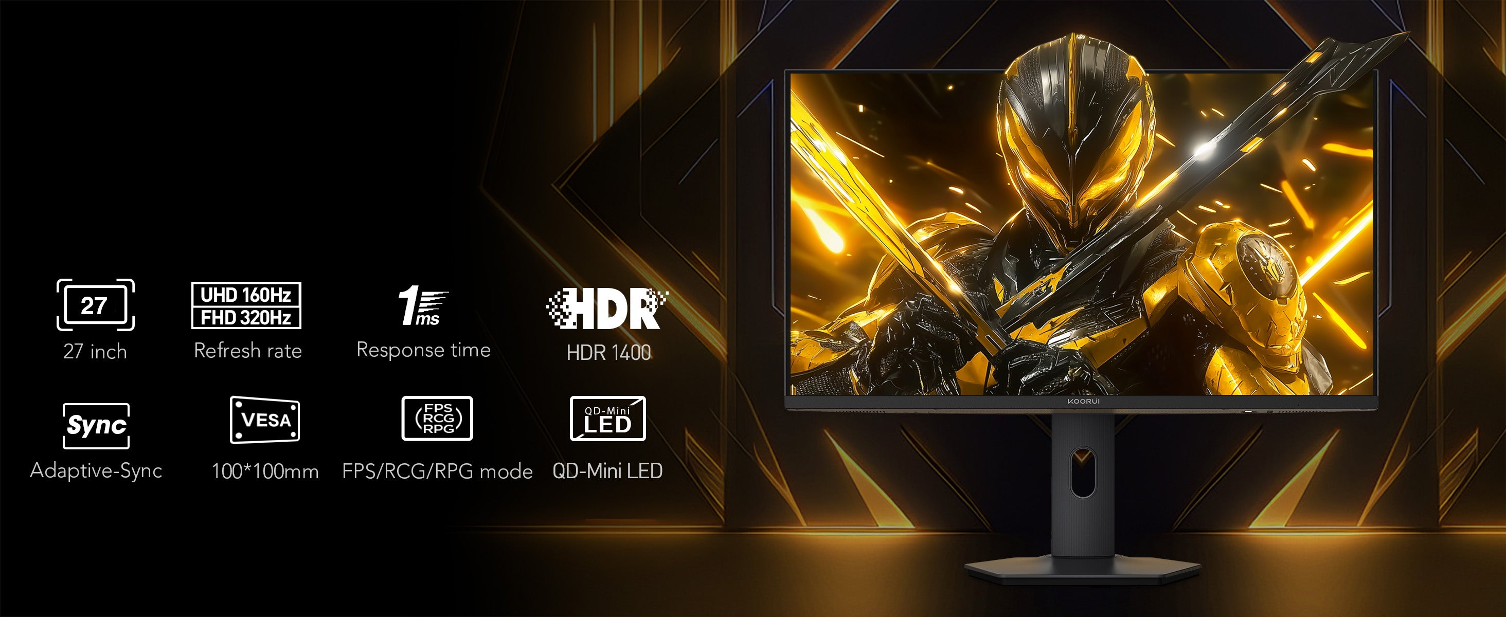 Moniteur de jeu KOORUI S2741LM 27 pouces double mode IPS/MINI LED UHD 160 Hz/FHD 320 Hz